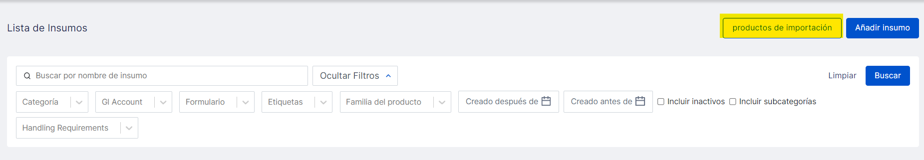 2. En la página de la lista de productos, haga clic en el botón de Productos de importación.